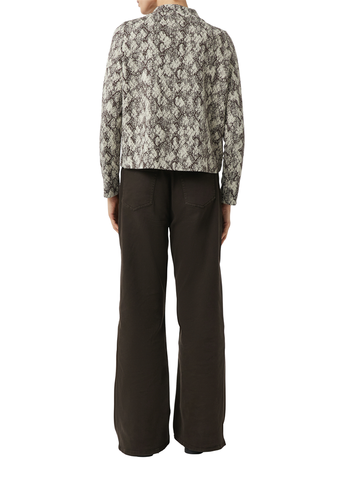 Animal-Print trifft Komfort: Dieser verkürzte Jacquard-Pullover aus hochwertigem Jersey-Viskosemix vereint Trendbewusstsein mit lässigem Tragegefühl. Die boxy Passform und das markante Allover-Muster machen ihn zu Ihrem stylischen Begleiter - ob beim Casual-Look, entspannten Lounge-Momenten oder der nächsten Party. Die verkürzte Länge harmoniert perfekt mit hochgeschnittenen Hosen oder Röcken.