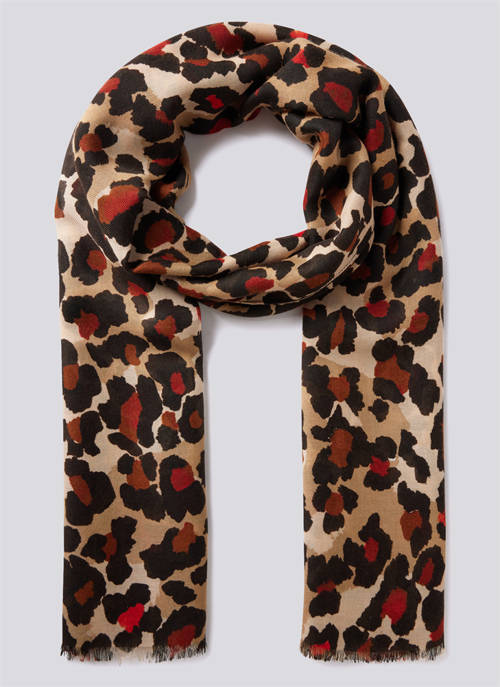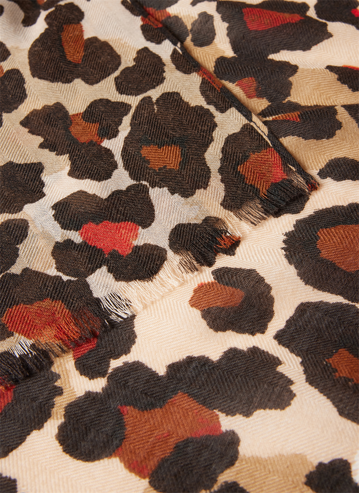 Dieser Schal mit aufregendem Leopardenmuster ist das perfekte Accessoire, um jedem Outfit eine Prise Eleganz und Abenteuer zu verleihen. Kombination aus warmen Brauntönen und leuchtendem Orange für vielseitige Styling-Optionen. Perfekt zum Tragen als Schal, Halstuch oder sogar als Gürtel.