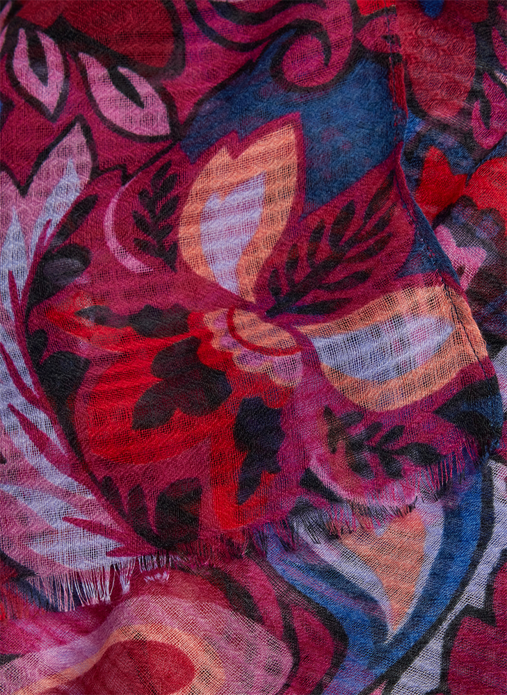 Das lebhafte Paisley-Muster in kräftigen Rot-, Pink- und Blautönen macht das Tuch zu einem echten Hingucker. Der weiche, leichte Stoff bietet ein angenehmes Tragegefühl und lässt sich vielseitig binden. Ideal, um es lässig um den Hals zu tragen oder als stilvolles Accessoire für den Alltag. Pflegeleicht und perfekt, um Ihrem Look das gewisse Etwas zu verleihen!