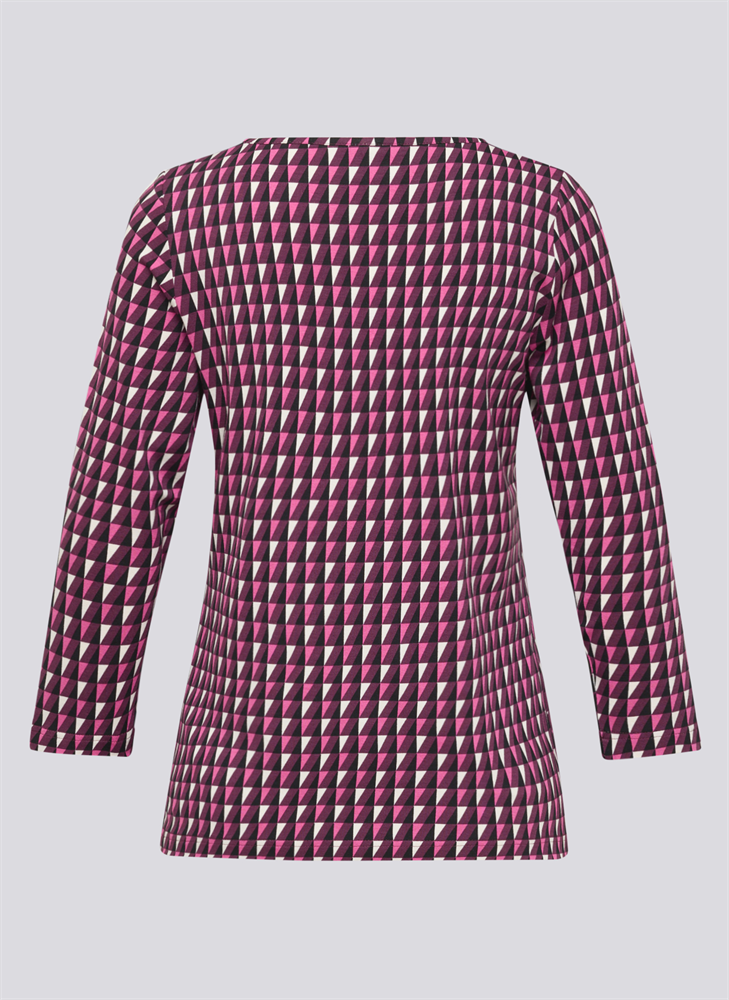 Das auffällige Allover-Muster in grafischer Optik verleiht diesem Shirt einen modernen Look. Die strukturierte Ware mit Stretch-Anteil sorgt für ein angenehmes Tragegefühl und einen formstabilen Sitz. Mit klassischem Rundhalsausschnitt und 3/4-langen Ärmeln eignet sich das Modell ideal für abwechslungsreiche Alltags-Outfits. Grafisches Allover-Muster. 3/4-lange Ärmel. Rundhalsausschnitt.