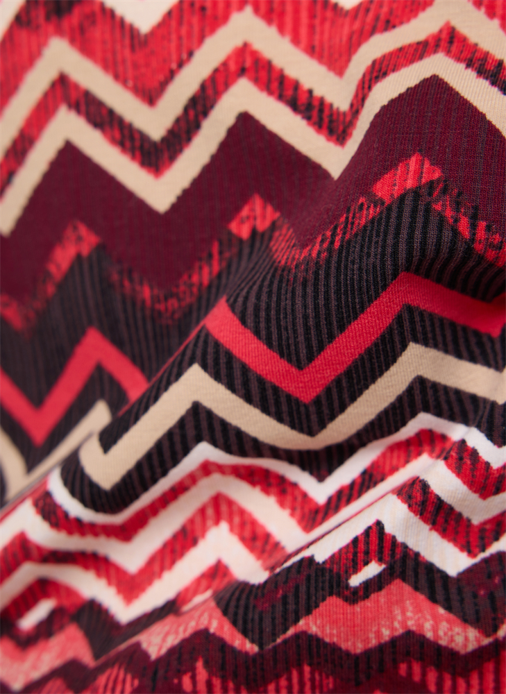 Dieses 3/4-Arm Shirt bringt mit seinem kräftigen Zickzackmuster in Rot-, Beere- und Naturtönen frischen Schwung in jede Herbstgarderobe. Der klassische Rundhalsausschnitt sorgt für ein angenehmes Tragegefühl, während die weiche Jersey-Qualität mit Elasthananteil optimale Bewegungsfreiheit garantiert _ ideal für stilvolle Casual-Looks. Grafisches Zickzackmuster in warmen Farben. Weiche, elastische Jerseyqualität. Figurumspielende, bequeme Passform.