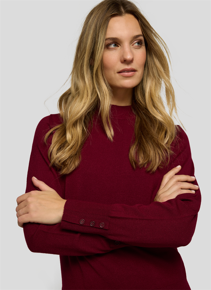 Der Pullover überzeugt mit seiner feinen Strickstruktur und dem klassischen Stehbund. Die langen Ärmel enden in breiten Rippbündchen, die mit drei kleinen Knöpfen stilvoll akzentuiert sind. Seitliche Schlitze am Saum sorgen für einen angenehmen Sitz. Der weiche Materialmix mit Modal-Anteil trägt sich besonders komfortabel. Feine Strickstruktur mit Stehbund. Breite Rippbündchen mit Knopfdetail. Seitenschlitze am Saum. Weiches, formstabiles Material. Langarm mit gepflegter Optik.