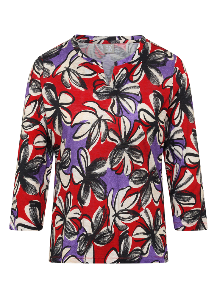 Dieses Shirt setzt auf ein ausdrucksstarkes florales Allover-Muster in intensiven Farben. Der kleine V-Ausschnitt bringt Abwechslung ins Design und sorgt für eine feminine Note. Dank weicher Jersey-Qualität bietet das Shirt ein angenehmes Tragegefühl und eine bequeme Passform. Ideal, um schlichte Outfits gekonnt aufzupeppen.Kleiner V-Ausschnitt.Floraler Allover-Print.Weiche Jersey-Qualität.3/4-Ärmel.Bequeme Passform.