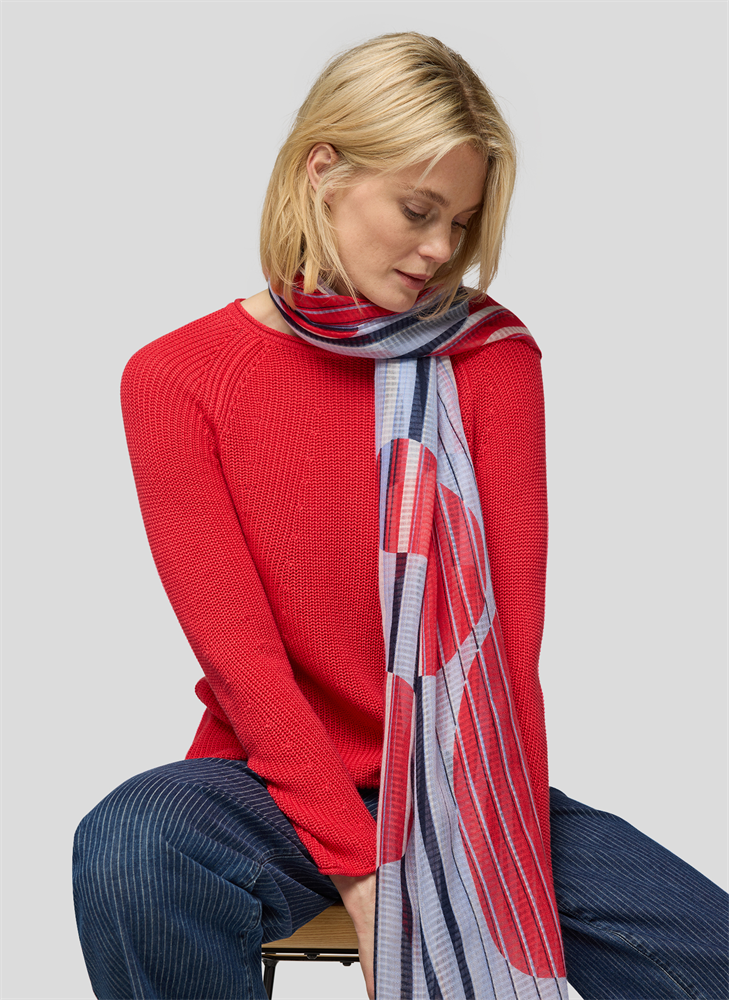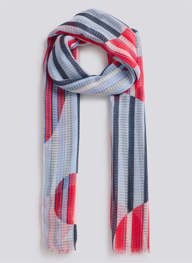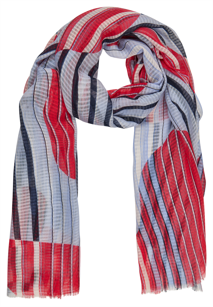 Dieser modische Schal begeistert mit seinem auffälligen Streifenmuster und den grafischen Farbblöcken in Blau, Rot und Weiß. Das leichte Material sorgt für angenehmen Tragekomfort und lässt sich vielseitig kombinieren. Perfekt für die Übergangszeit oder als stilvolles Accessoire zu verschiedenen Outfits. Leicht und angenehm zu tragen. Auffälliges Streifen- und Farbblockdesign. Vielseitig kombinierbar für verschiedene Outfits. Ideal für die Übergangszeit.