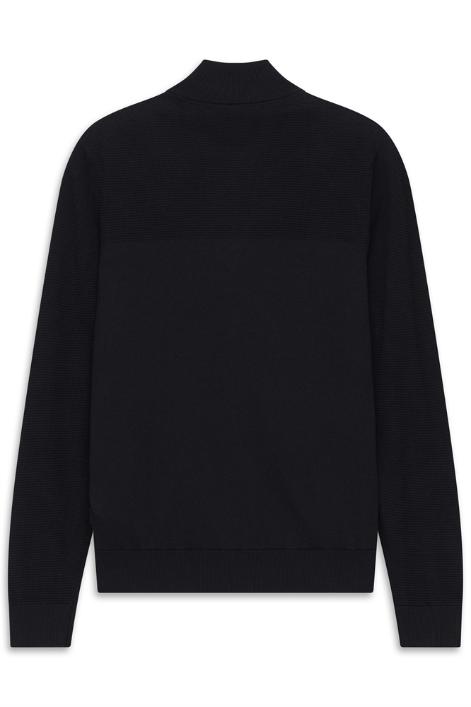 Strickjacke mit Reißverschluß, Ärmel in Struktur, Vorderteil in Nylon, Paspeltaschen mit Reißverschluß