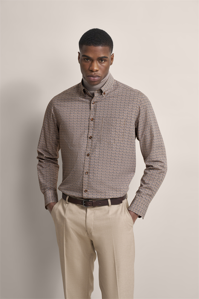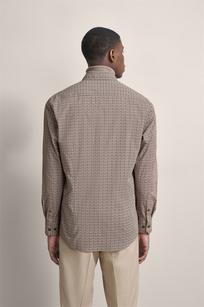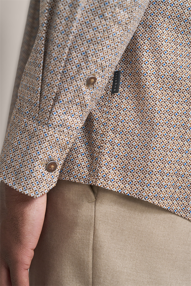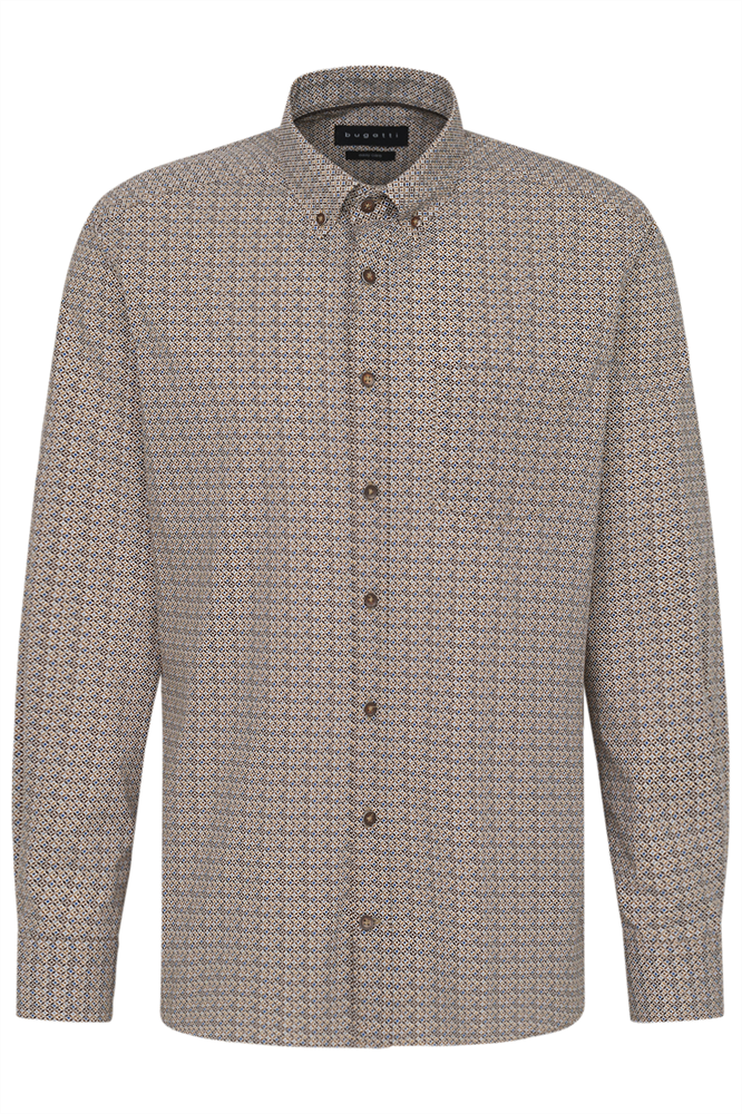 bedrucktes Poplinhemd mit Paspel im Kragen Ein bugatti Flaglabel ist an der Seitennaht angebracht. Easy Care Ausrüstung