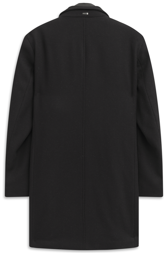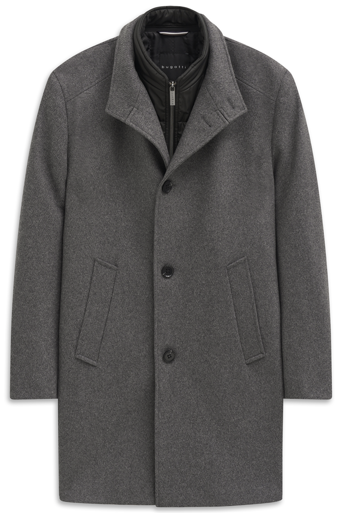 Klassischer Stehkragenmantel mit heraustrennbarem Westenfake und schrägen Leistentaschen. Innen ein ganzes Futter mit Flexcity Einsätzen im Rücken und Innentaschen. Der Artikel mit 55% Wollanteil hat einen angenehmen Griff.